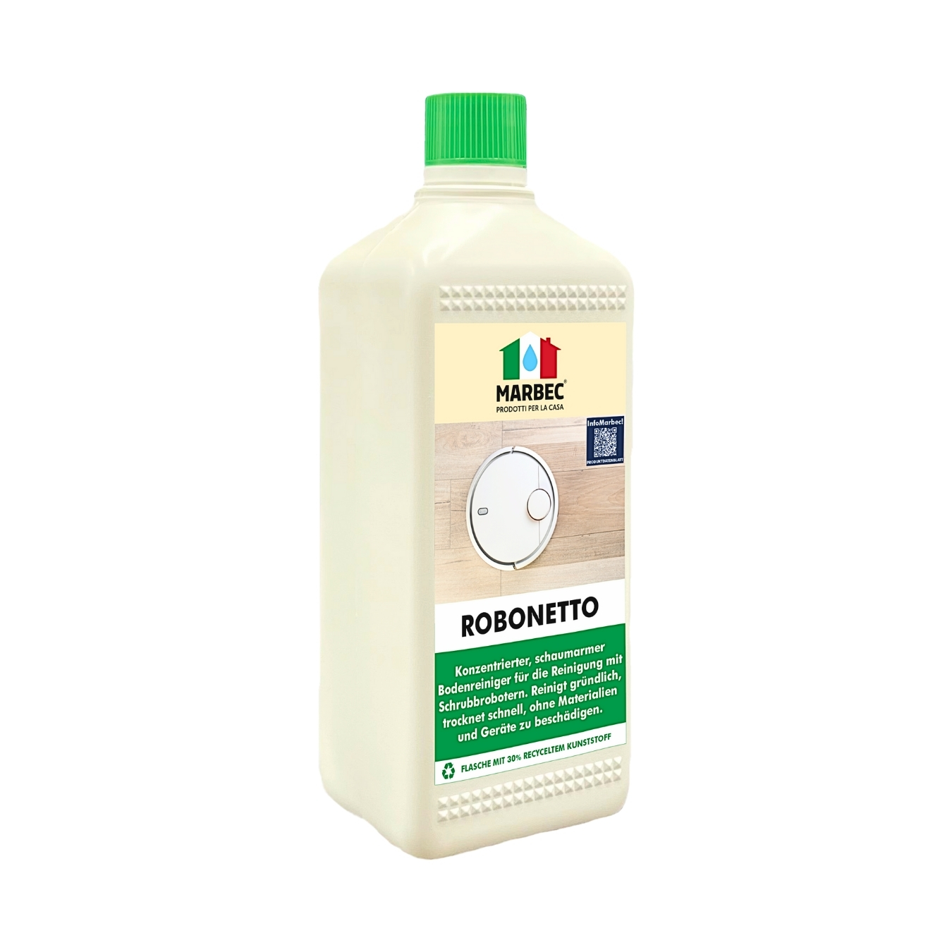 ROBONETTO ist ein konzentrierter Reiniger für Bodenreinigungsroboter für die gewöhnliche Reinigung aller Bodenarten (Terrakotta, Stein, Beton, Holz, Keramik, Feinsteinzeug, PVC, Linoleum und andere synthetische Oberflächen).
